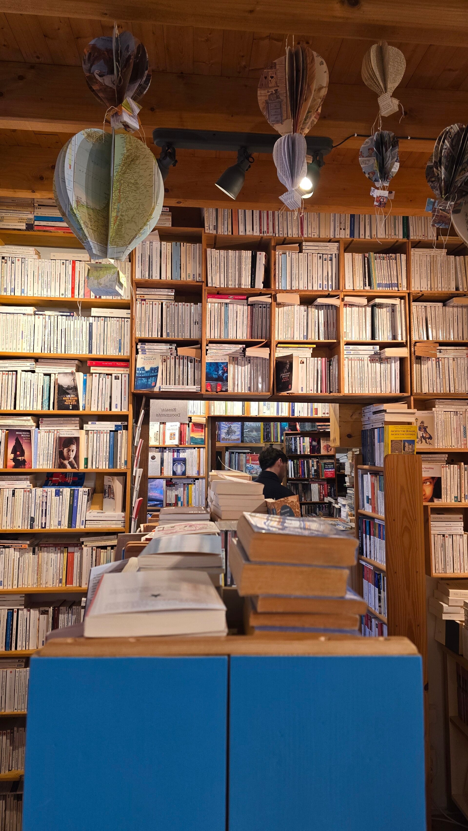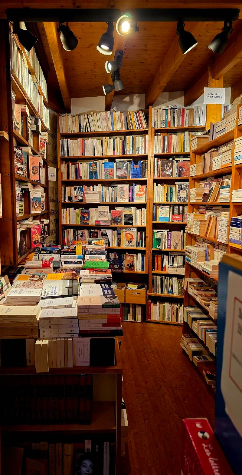 Les rayonnages montent du sol au plafond et offrent un parcours riche et varié. La sélection mêle nouveautés marquantes, textes reconnus et ouvrages plus discrets, souvent inattendus. Chaque recoin invite à la curiosité, à la fouille, à la découverte patiente.